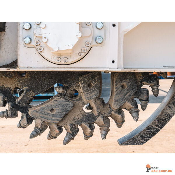 Dank der Neigungstechnik steht das Fräsrad immer senkrecht, auch wenn der Kompaktlader seitlich geneigt ist. Das mitgelieferte V3-Ventil ermöglicht die volle Kontrolle aller hydraulischen Funktionen (Tiefe, Verschub, Neigung) auch an Ladern, die nur über einen Standard-High-Flow-Kreis (3 Leitungen) verfügen.