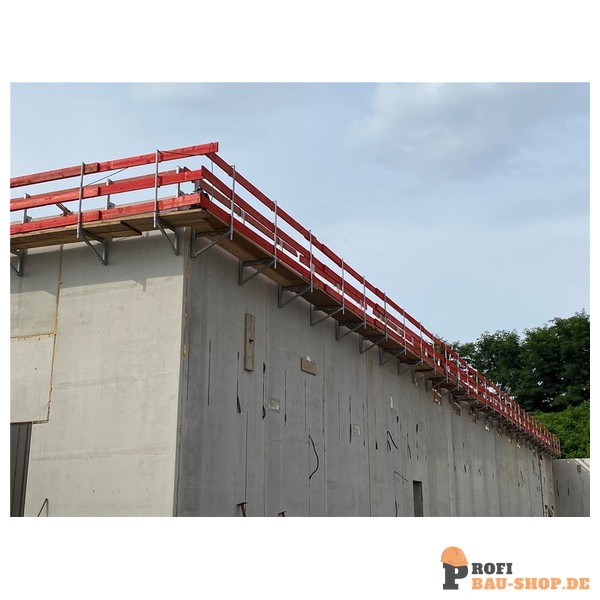 Hohlwand-Betonierkonsole Die Hohlwand-Betonierkonsole ermöglicht sicheres Arbeiten an der Wandoberkante sowie am Deckenrand. eingesetzt werden Auch mit Stahl-Gerüstbohle einsetzbar durch U-Eisen Aufnahme.