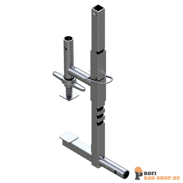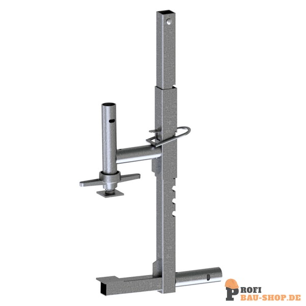 Multisicherungszwinge mit Geländerpfosten bestehend aus: 1 x Multisicherungszwinge (Art.-Nr. 11191) 1 x Multigeländerpfosten (Art.-Nr 11192) Multi-Sicherungszwinge für die Absturzsicherung beim erhöhten Arbeiten, die Zwinge kann auf Decken vertikal oder auf Brüstungen horizontal befestigt werden, Befestigung per Gewinde und Flügelmutter, Grobeinstellung über Klemmen der Kontur des beweglichen Schenkels für eine schnelle Installation, das Einstecken des Geländerpfostens erfolgt erst nach dem Anbringen der Zwinge, für eine bequeme Anwendung, stabile und sichere Stahlkonstruktion. Ausführung: verzinkt Multi-Geländerpfosten zum Einsetzen in Multi-Sicherungszwinge (Art.-Nr. 11191) aus Rundrohr Ø 33,7 mm, Höhe: 1,00 m, mit 3 Haken zum Befestigen von Bordbrettern, mithilfe der Multi-Sicherungszwinge kann eine Brüstungssicherung ebenso wie eine Deckensicherung aufgebaut werden. Ausführung: verzinkt