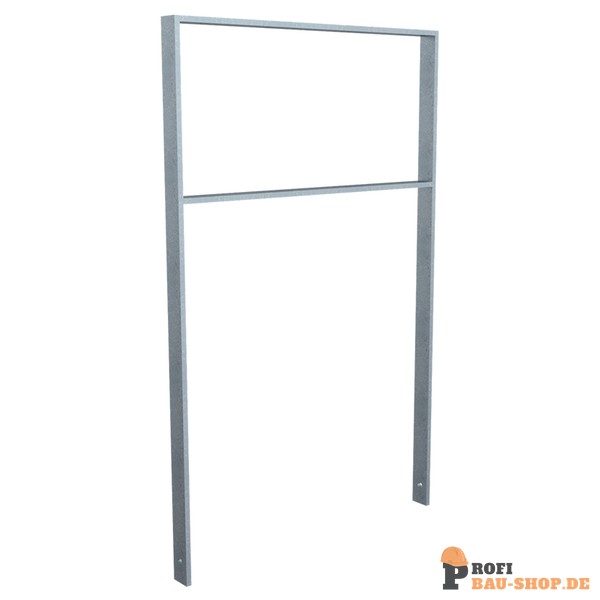 Robuster Schake Anlehnbügel aus feuerverzinktem Flachstahl 50 x 12 mm, ideal zum Einbetonieren und mit Querholm für zusätzliche Stabilität.