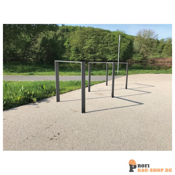 Feuerverzinkt und beschichtet: Der Anlehnbügel ist mit einer robusten Zinkschicht versehen, die ihn extrem langlebig und widerstandsfähig gegen Korrosion macht. Die zusätzliche Pulverbeschichtung in DB 703 (Eisenglimmer anthrazit) sorgt nicht nur für eine ansprechende Optik, sondern erhöht auch den Schutz vor Witterungseinflüssen und mechanischer Beanspruchung.