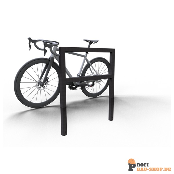 Robuster Schake Anlehnbügel aus feuerverzinktem Stahlrohr Rechteckrohr 60 x 60 mm mit Querholm. Ideal zum Einbetonieren und langlebig beschichtet in DB 703.