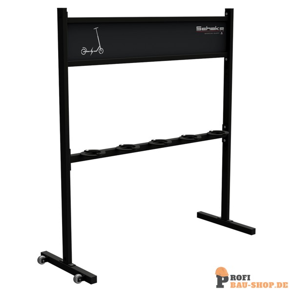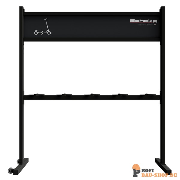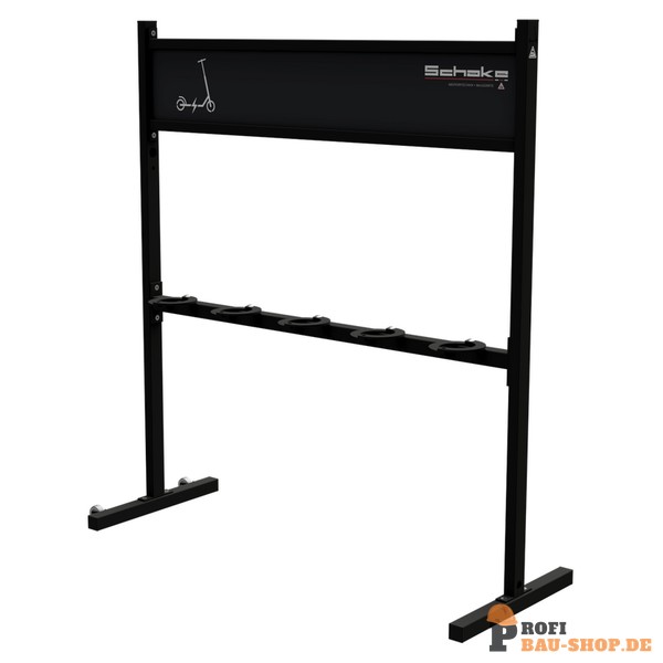 Dieser mobile Scooterständer von Schake mit Werbeschild bietet 5 Einstellplätze und ist feuerverzinkt für maximale Langlebigkeit. Ideal für den flexiblen Einsatz.