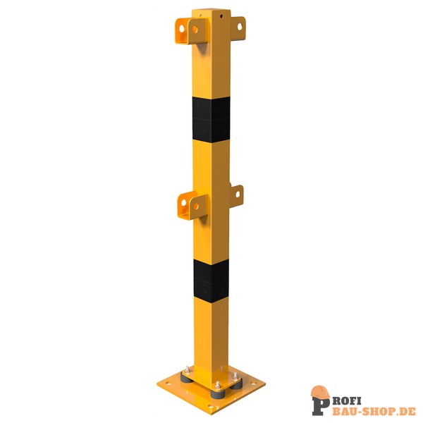 Der Schake Standpfosten aus robustem 70x70 mm Stahlrohr ist zum Aufdübeln konzipiert und bietet dank seiner neigbaren, elastischen Konstruktion optimalen Schutz für den Hallenboden. Ideal als Mittelpfosten für Ober- und Knieholm in vielseitigen Geländersystemen.