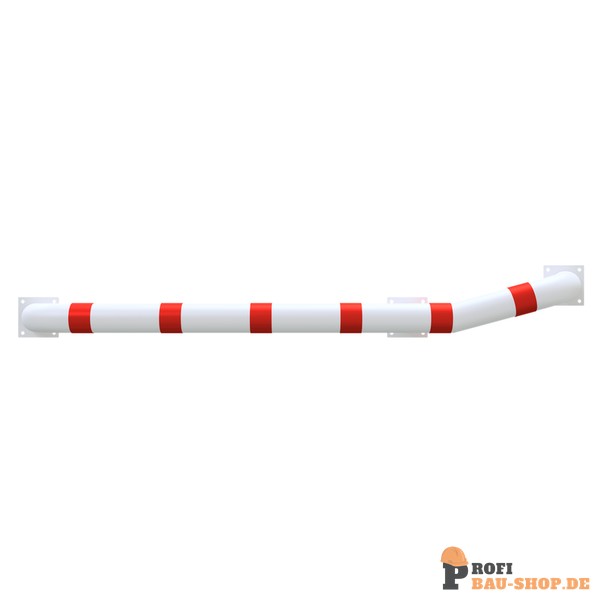 Schake LKW Einfahrhilfe, feuerverzinkt und weiß beschichtet mit rot reflektierenden Streifen, abgewinkelt zur rechten Seite, Gesamtlänge: ca. 3000 mm