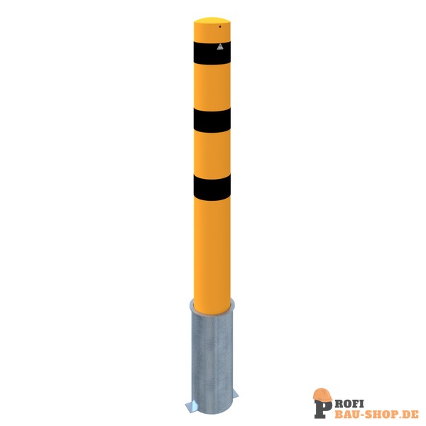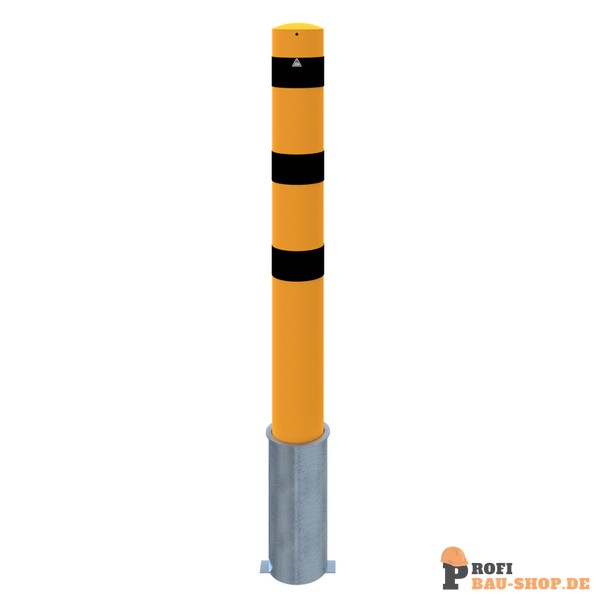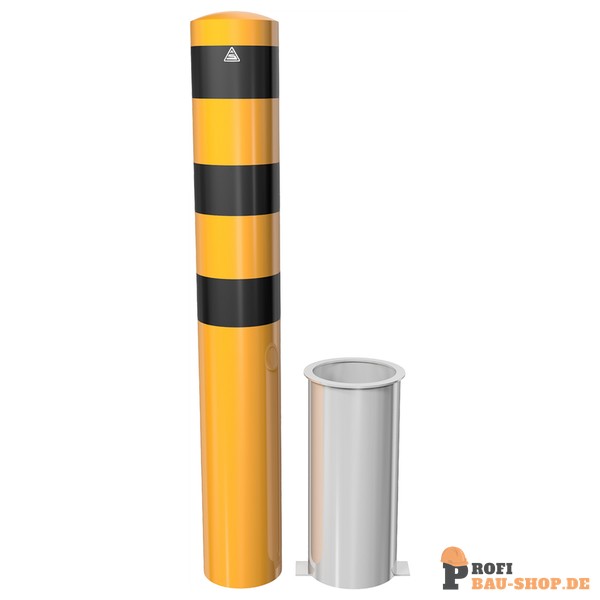 Schake Absperrpoller Stahlrohr Ø 193 x 3,6 mm gelb / schwarz, herausnehmbar ohne Verschluss mit aufgeschweißter Stahlkappe, inkl. Bodenhülse Art.-Nr. 40191_10, Gesamtlänge: 2000 mm, mit aufgeschweißter Stahlkappe
