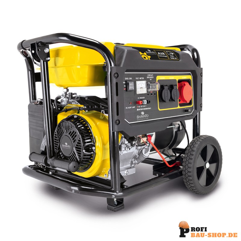 BAMATO Benzin Stromerzeuger 5,4 kW mit Elektrostart und AVR-Regelung für Baustelle und Garten