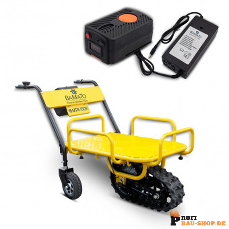 BAMATO elektrische Schubkarre mit Raupenlaufwerk und Lithium-Ionen-Akku (150 kg Tragkraft)