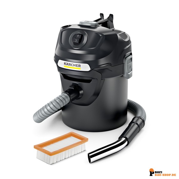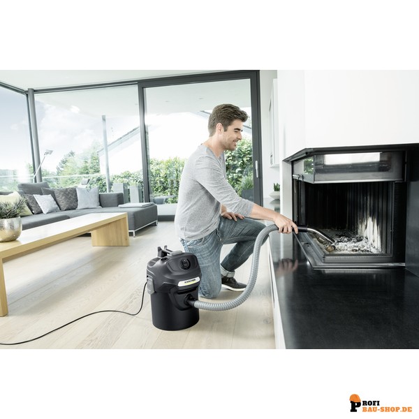 Der Asche- und Trockensauger Kärcher AD 2 mit seiner 600-Watt-Turbine macht die Beseitigung von Asche kinderleicht, indem er saugstark, ausdauernd, anwenderfreundlich, vielseitig und sicher ist. Seine konstant hohe Saugkraft verdankt er einem innovativen, integrierten Filterabreinigungssystem: Per Knopfdruck wird der zugesetzte Filter freigeblasen, wodurch die Saugleistung sofort wiederhergestellt wird. Die Entleerung des 14-Liter-Metallbehälters gestaltet sich dank eines 1-teiligen Filtersystems mit robustem Flachfaltenfilter und Metall-Grobschmutzfilter sowie eines praktischen Handgriffs am Behälter bequem, schnell und absolut ohne Schmutzkontakt. Für maximale Sicherheit bei der Ascheaufnahme sorgen der Metallbehälter, ein flexibler Saugschlauch aus ummanteltem Metall sowie die Verwendung hochwertiger flammhemmender Materialien. Das speziell abgeschrägte Handrohr gewährleistet optimalen Arbeitskomfort, selbst in schwer erreichbaren Ecken und Nischen des Kamins, und ermöglicht das restlose Aufsaugen aller Ascherückstände. Zudem lässt sich der Aschesauger durch sein kompaktes Design platzsparend verstauen und der Saugschlauch bequem in der Parkposition ablegen.