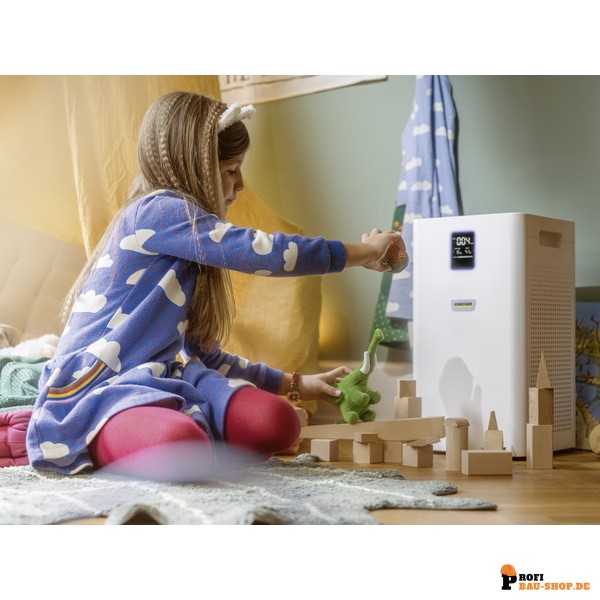 Der Kärcher Luftreiniger AF 30 ist die ideale Lösung für eine perfekte Luftreinigung in mittelgroßen Räumen, Wohnzimmern und Arbeitsplätzen von bis zu 40 m². Sein hochentwickeltes, mehrlagiges Filtersystem, bestehend aus einem H13-Filter und einer Aktivkohleschüttung, befreit die Innenraumluft zuverlässig von Allergenen, Feinstaub, Schadstoffen, unangenehmen Gerüchen und sogar Krankheitserregern. Dank eines hochwertigen Lasersensors und des intelligenten Automatikmodus passt sich die Leistungsstufe des AF 30 automatisch an den aktuellen Grad der Luftverschmutzung an, um stets optimale Ergebnisse zu erzielen.