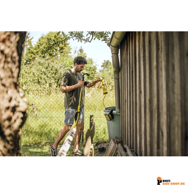 Die Kärcher Akku-Fasspumpe BP 2.000-18 Barrel ermöglicht die flexible Nutzung von Regenwasser aus Fässern und IBC-Containern, auch ohne Stromanschluss im Garten. Mit 18 V Battery Power Akkuplattform und praktischer Fassrandbefestigung bietet sie eine komfortable und nachhaltige Bewässerungslösung.