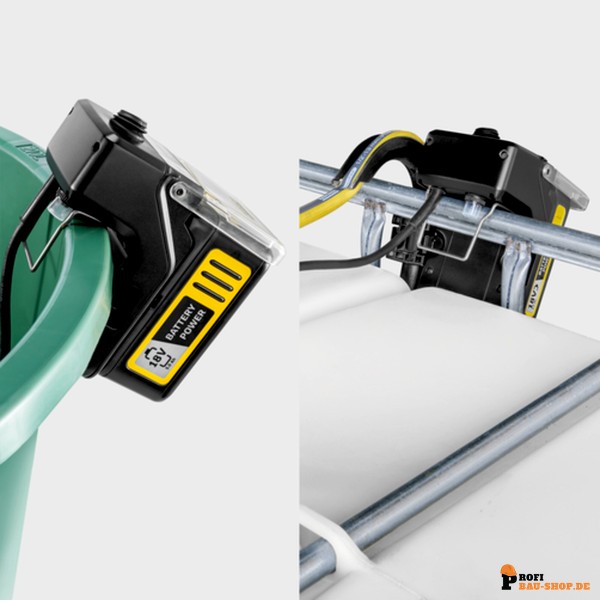 • Akkuhalterung am Fass mit integriertem Ein-/Ausschalter: Sichert den Akku stabil und bietet eine ergonomische, bückenfreie Bedienung.