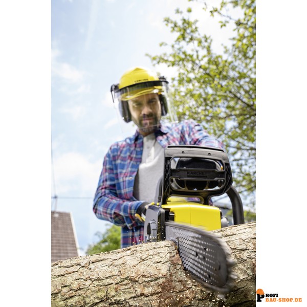 Die Kärcher Akku-Kettensäge CNS 18-30 Battery macht die Baumpflege und Holzarbeiten im Garten zu einer komfortablen und sicheren Angelegenheit. Dank ihres geringen Gewichts und der idealen Schwertlänge von 30 cm ist sie äußerst vielseitig einsetzbar und ermöglicht schnelle, mühelose Schnitte mit einer Kettengeschwindigkeit von 10 m/s. Das innovative werkzeuglose Kettenspannsystem und die automatische Kettenschmierung sorgen für eine einfache Handhabung und minimierten Wartungsaufwand. Maximale Sicherheit gewährleisten die Kombination aus Kettensägenbremse und 2-Faktoren-Entriegelung sowie der zuverlässige Rückschlagschutz, die ein unbeabsichtigtes Starten verhindern und die Kette sofort stoppen.