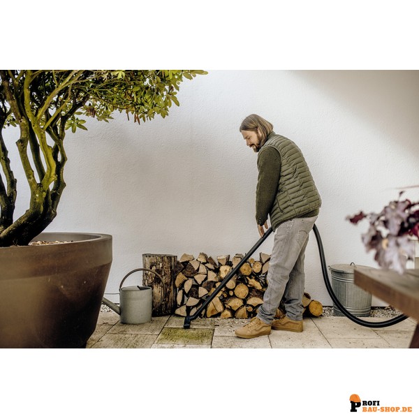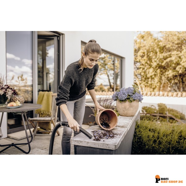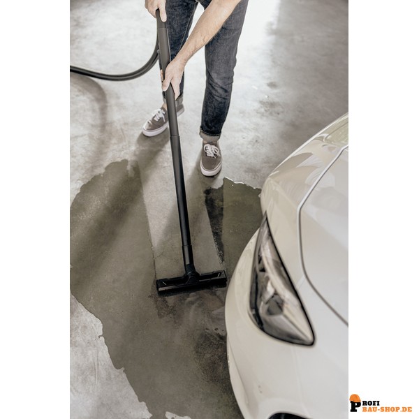 Der Kärcher WD 3 V-17/4/20 definiert Kraft und Effizienz neu und bietet dabei ein exzellentes Preis-Leistungs-Verhältnis. Mit einer Nennleistungsaufnahme von nur 1000 Watt überzeugt dieser Nass-/Trockensauger durch eine beeindruckende Saugkraft und hervorragende Reinigungsergebnisse. Er ist perfekt auf die Bedürfnisse bei der Beseitigung von trockenem, nassem, feinem oder grobem Schmutz abgestimmt – dank des optimal aufeinander abgestimmten Geräts, Saugschlauchs und der Clips-Bodendüse. Die kompakte Bauweise und ein robuster 17-Liter-Kunststoffbehälter machen ihn zu einem langlebigen und zuverlässigen Partner. Der 4 Meter lange Anschlusskabel und der 2 Meter lange Saugschlauch bieten dabei ausreichend Reichweite. Der innovative einteilige Patronenfilter ermöglicht den Wechsel zwischen Nass- und Trockensaugen ohne zeitraubenden Filterwechsel, während der Vliesfilterbeutel für eine dauerhaft hohe Saugleistung sorgt. Praktische Details wie die Blasfunktion für schwer zugängliche Stellen, die platzsparende Schlauch- und Kabelaufbewahrung am Gerätekopf und die Ablagefläche für Werkzeug und Kleinteile steigern den Arbeitskomfort erheblich. Das „Pull & Push“-Verschlusssystem ermöglicht ein einfaches und sicheres Öffnen und Schließen des Behälters, und der abnehmbare Handgriff erlaubt das direkte Anstecken von Zubehör an den Saugschlauch.