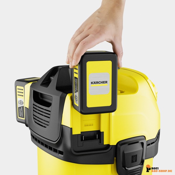 • Leistungsstark & Akkubetrieben: 2x 18 V Akkus (36 V System) für maximale Saugkraft und kabellose Freiheit auf der 18 V Kärcher Battery Power-Akkuplattform.