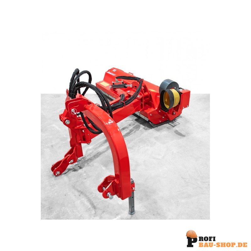 robuste Gleitkufen, Mulchgehäuse aus 8 mm Stahlblech, Hydraulikanschlüsse mit integrierten Drosselventilen am Hubzylinder, CE geprüft nach den neuesten Normen und Richtlinien