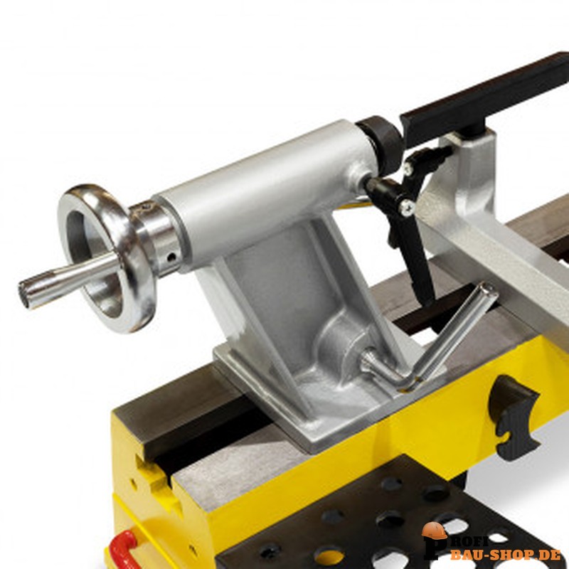 Zusätzlich überzeugt die Maschine durch ihre durchdachte Ergonomie und Ausstattung. Der Reitstock und die 150 mm Handauflage sind mit Schnellspannhebeln ausgestattet, was ein schnelles und unkompliziertes Justieren ermöglicht. Die 24-Schritt-Teilung zur Arretierung des Werkstücks sowie die präzisionsgelagerte Spindel unterstreichen den professionellen Anspruch dieser Maschine. Mit der integrierten Arbeitsleuchte und der praktischen Werkzeugablage direkt am Maschinenkörper ist alles für einen effizienten Arbeitsablauf vorbereitet.