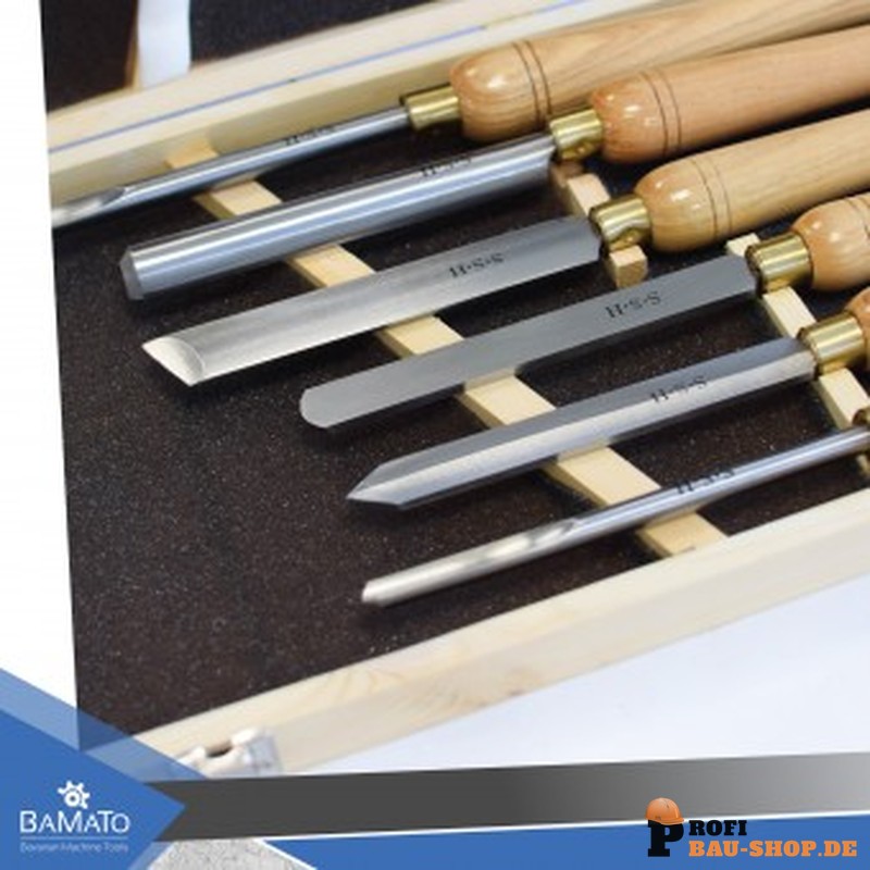 BAMATO HSS-Drechseleisen 6-teilig Set in Holzbox für Holzdreharbeiten