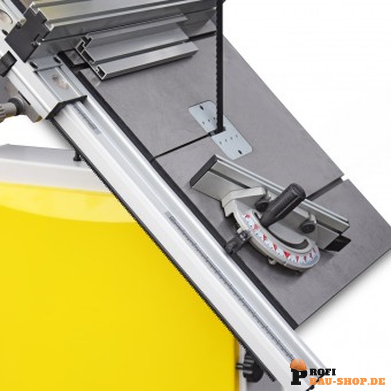 • Kurzer Queranschlag mit Führungsschiene für beidseitige Nutzung am Sägetisch