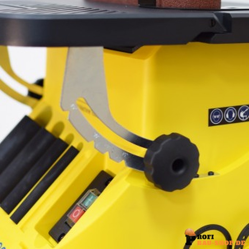 Ein besonderes technisches Highlight ist die integrierte Oszillationsfunktion. Durch die gleichzeitige Rotation und die vertikale Hubbewegung der Schleifspindel bzw. des Schleifbandes wird ein Zusetzen des Schleifmittels effektiv verhindert. Dies garantiert nicht nur eine längere Standzeit der Schleifmittel, sondern sorgt auch für ein extrem feines und glattes Schliffbild ohne unerwünschte Brandspuren. Der kraftvolle 450 Watt Motor bietet dabei die nötigen Reserven, um auch härtere Hölzer souverän zu bearbeiten.