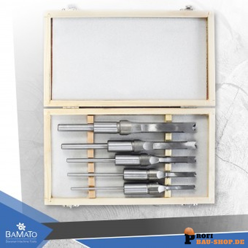 BAMATO 5-tlg. Stemmbohrerset für Zapfenverbindungen in Holzbox für präzise Holzbearbeitung