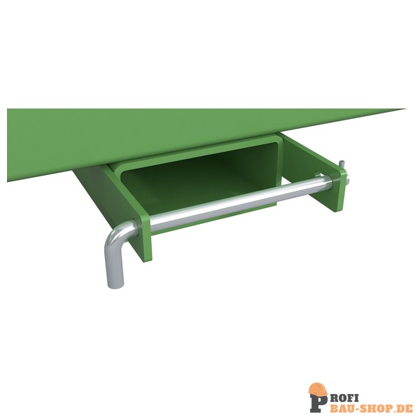 Die Bauer Südlohn Langguttraverse LGT 2,5 in Resedagrün transportiert lange, instabile Lasten (Blechtafeln, Rohre) sicher und effizient. Robuste Stahlkonstruktion, einfache Gabelzinken-Aufnahme mit Sicherungsbolzen für maximale Stabilität. Perfekt für professionellen Einsatz.