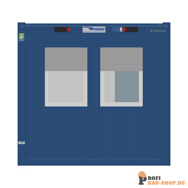 Entdecken Sie den vielseitigen CONTAINEX Bürocontainer 20' XL (3M) aus der bewährten CLASSIC Line, die ideale Lösung für temporäre oder dauerhafte Raumbedürfnisse auf Ihrer Baustelle oder Ihrem Firmengelände. Dieser robuste Bürocontainer ist bereits mit einem praktischen Vordach für die Stirnseite ausgestattet und bietet dank seiner hochwertigen Isolierung und integrierten Heizung optimalen Komfort zu jeder Jahreszeit. Die vorhandenen Staplertaschen erleichtern den Transport und die präzise Positionierung des Containers.