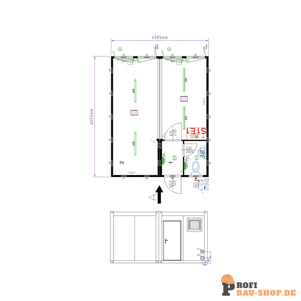 • Ausstattung: 4x Heizung, Toilette(n), Waschbecken, Staplertaschen (2050mm)