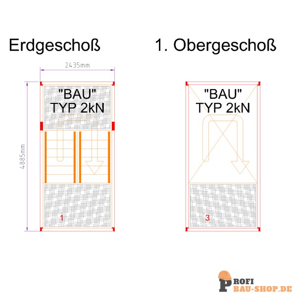 • 1 Stk. 16' Außentreppencontainer "Bau", Modul A