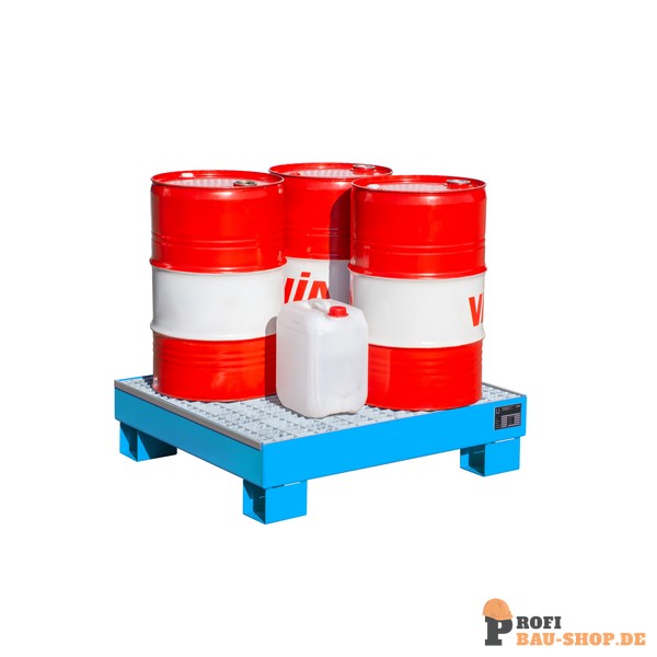 Die Bauer Südlohn Auffangwanne AW 60-2/M in Lichtblau bietet sichere Lagerung für bis zu vier 60-Liter-Fässer oder Kleingebinde. Aus 3 mm Stahlblech gefertigt, mit verzinktem Gitterrost und 1000 kg/m² Tragfähigkeit, ist sie zugelassen für entzündbare und gewässergefährdende Flüssigkeiten. Ideal für höchste Sicherheit und Langlebigkeit.