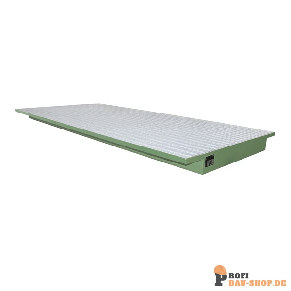 Die Bauer Südlohn EHW 2700 Einhängewanne in Resedagrün ermöglicht die schnelle und gesetzeskonforme Umrüstung Ihrer Regalsysteme. Gefertigt aus 3 mm Stahlblech, mit verzinktem Gitterrost (1000 kg/m² Tragfähigkeit) und ÜHP gem. StawaR. Zugelassen für entzündbare und gewässergefährdende Flüssigkeiten.