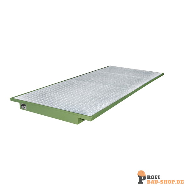 Die Bauer Südlohn EHW 3300 Einhängewanne in Resedagrün (RAL 6011) ist die ideale, gesetzeskonforme Lösung zur sicheren Lagerung entzündbarer und gewässergefährdender Flüssigkeiten in Regalsystemen. Gefertigt aus 3 mm Stahlblech mit verzinktem Gitterrost (1000 kg/m² Tragfähigkeit) und 227 l Auffangvolumen. Mit ÜHP gem. StawaR zugelassen. Jetzt umrüsten!