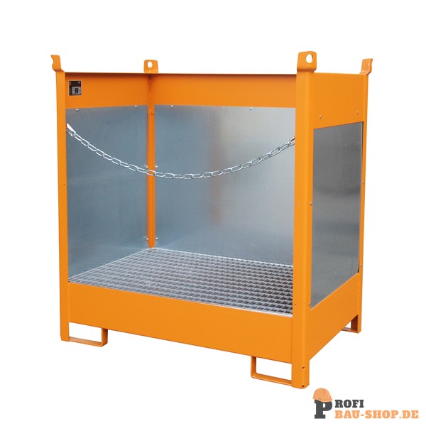 Die Bauer Südlohn FSP-2 G Fass-Stapelpalette in Gelborange ermöglicht sicheres Lagern, Stapeln und Transportieren von bis zu zwei 200-Liter-Fässern. Mit 210 l Auffangvolumen und 3-seitiger Spritzschutzwand ist sie für entzündbare und gewässergefährdende Flüssigkeiten zugelassen. 3-fach stapelbar und unterfahrbar.