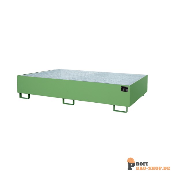 Die Bauer Südlohn Regalwanne RW-GR 2700-2 in Resedagrün ermöglicht die schnelle und gesetzeskonforme Umrüstung Ihrer Regalsysteme. Aus robustem 3 mm Stahlblech gefertigt, bietet sie 570 Liter Auffangvolumen und ist zugelassen für entzündbare sowie gewässergefährdende Flüssigkeiten. Inklusive verzinktem Gitterrost für maximale Sicherheit.