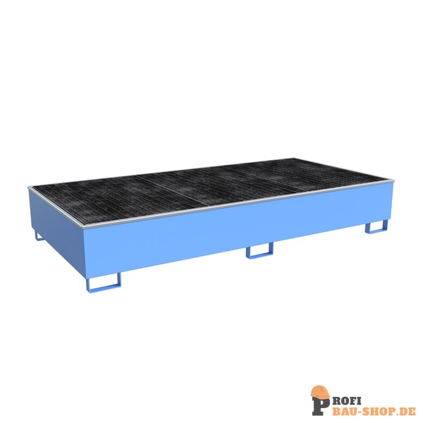 Die Bauer Südlohn Regalwanne RW-GR 2700-3 PE in Lichtblau (RAL 5012) mit PE-Einsatz rüstet Ihre Regalsysteme schnell und gesetzeskonform für Gefahrstoffe um. Mit 1000 l Auffangvolumen und ÜHP gem. StawaR ideal für entzündbare, gewässergefährdende und ätzende Flüssigkeiten. Robustes, lackiertes Stahlblech mit verzinktem Gitterrost für höchste Sicherheit.