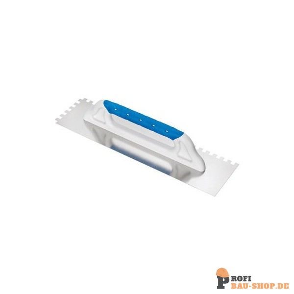 Die STORCH Edelstahl-Zahnkelle Schweizer Form (480 x 130 mm, Stärke 0,7 mm) bietet höchste Präzision und Langlebigkeit. Ausgestattet mit einer 7-fach verschweißten Griffverbindung und einem ergonomischen 2-Komponenten-Griff für optimalen Komfort und sicheren Halt bei allen Spachtelarbeiten. Ideal für Profis, die Wert auf Qualität legen.