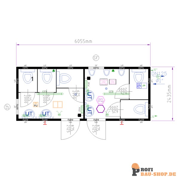 • Ausstattung: 2x Heizung, 5x Toilette(n), 3x Urinal(e), 4x Waschbecken, Staplertaschen (950mm)