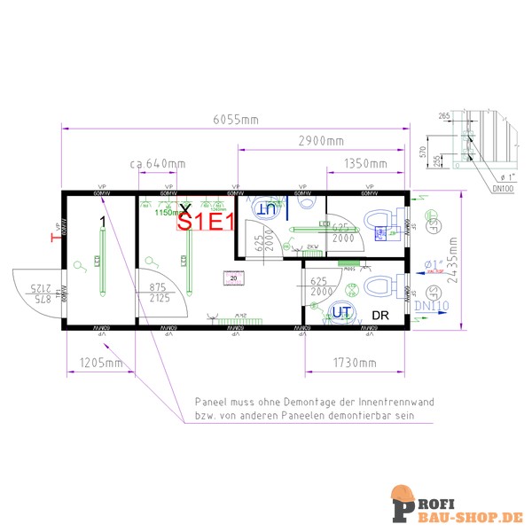 • 1 Stk. Innentüre WC Trennwand 625X2000 mm