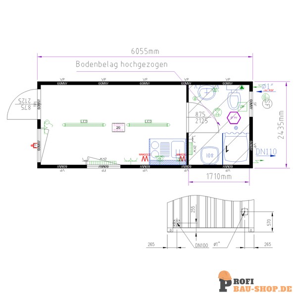 Ausführung Elektro-AnschlussInkl. CEE-Versenkungen, inkl. Verteilerkasten