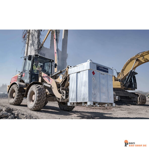 Die QUADRO-D 770-230 zeichnet sich durch ihre kompakte Bauweise im EURO-Palettenmaß aus und ist selbst im befüllten Zustand 3-fach stapelbar, was wertvolle Lagerfläche spart. Der abschließbare, federunterstützte Deckel mit Gasdruckfedern ermöglicht eine komfortable Bedienung von drei Seiten. Integrierte Sicherheitsmerkmale wie die 3-Punkt-Verriegelung des Staukastens und ein aufbohrsicherer Schließzylinder schützen den Kraftstoff zuverlässig vor unbefugtem Zugriff.