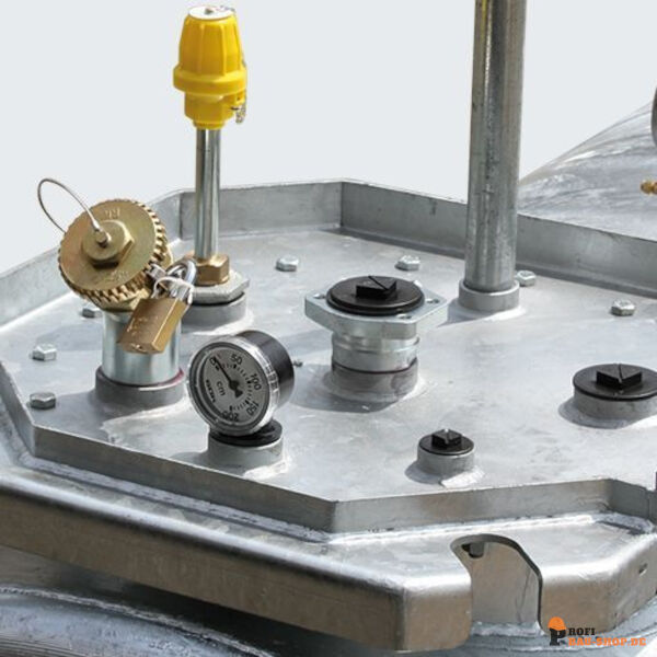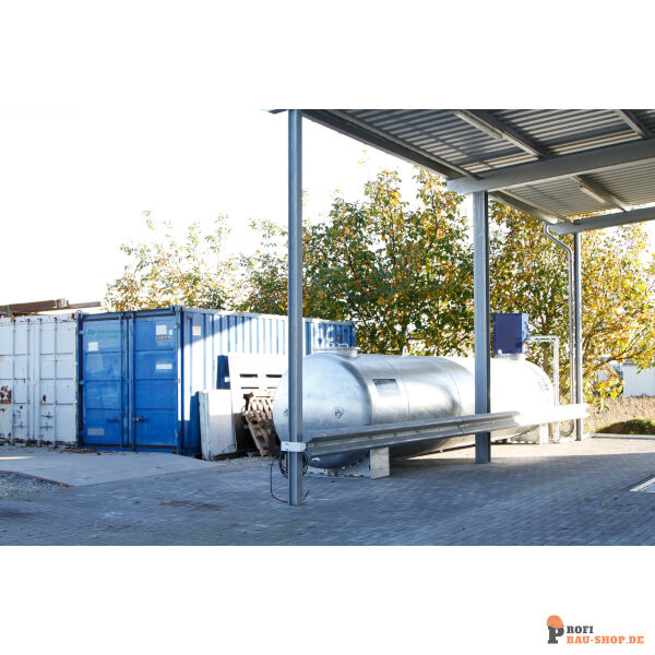 Die robuste Bauweise aus komplett verzinktem Stahl garantiert einen jahrzehntelangen Korrosionsschutz. Dank der integrierten Vakuum-Lecküberwachung wird der Zustand beider Wände permanent und energieunabhängig überwacht, was ein Höchstmaß an Umweltsicherheit gewährleistet. Die Anlage ist serienmäßig mit einem Grenzwertgeber ausgestattet, der eine sichere Befüllung durch Tankwagen ermöglicht.