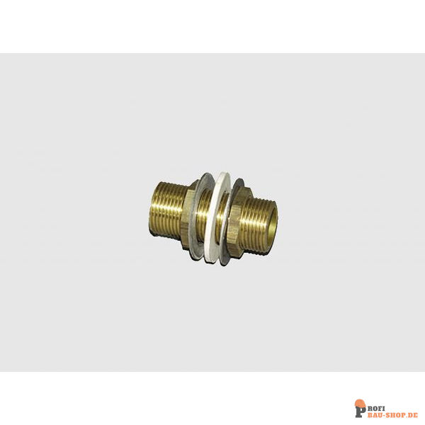 Durchschraubgewinde (Messing) mit Außengewinde 1 1/4", 2 Kontermuttern, ohne Montage am Behälter