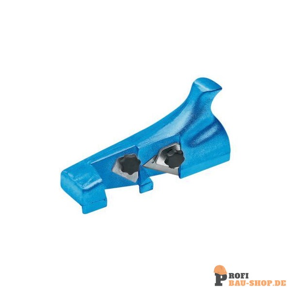Zum Fasen von Gipskarton-Platten. Robuste Aluminium-Ausführung. Zwei in einem: sowohl für Gehrungsecken (45°) als auch für Stöße (22,5°). Trapez-Klingen mit wenigen Handgriffen austauschbar.