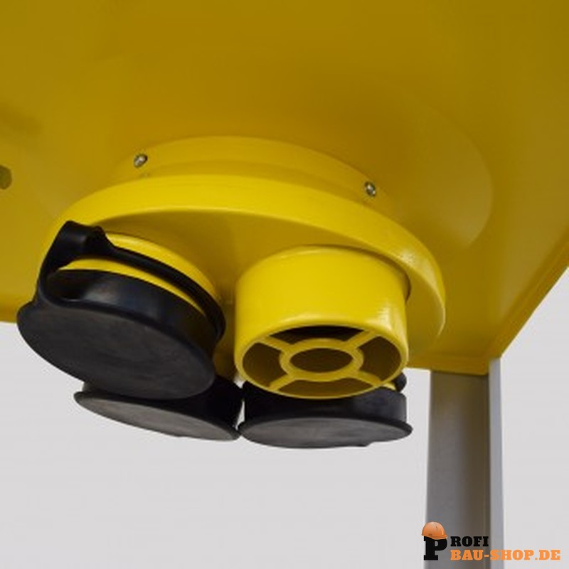 Ein besonderes Highlight dieser Maschine ist der serienmäßige 4-fach Verteiler, der den gleichzeitigen Anschluss von bis zu vier Maschinen ermöglicht. Dies spart wertvolle Zeit beim Umrüsten der Absaugwege und erhöht die Produktivität in Ihrem Betrieb erheblich. Die robuste Metallkonstruktion sowie das langlebige Metalllüfterrad garantieren eine hohe Standzeit und Zuverlässigkeit, selbst bei intensiver Nutzung unter anspruchsvollen Bedingungen im gewerblichen Einsatz.