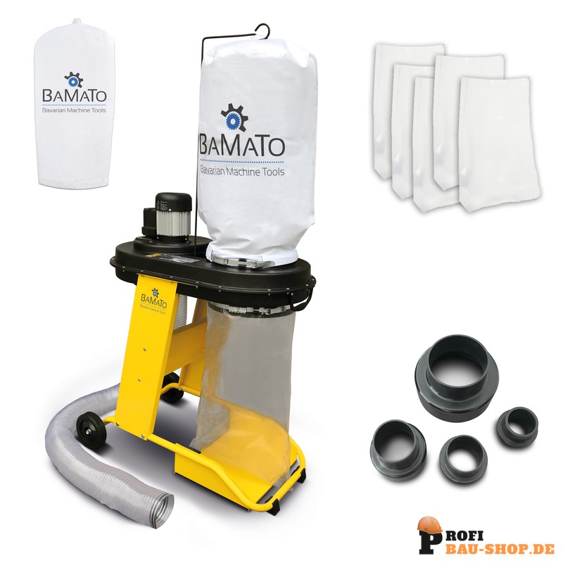 BAMATO AB-550 Absauganlage mit Adapter-Set und 5 Spänesäcken für sauberes Arbeiten