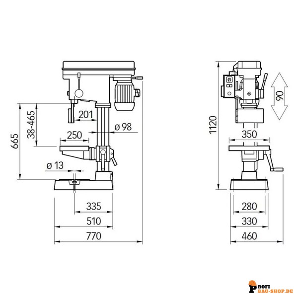 Technische Daten ELMAG Bohr- und Fräsmaschinen PREMIUM Highspeed-Tischbohrmaschine V22E PGM