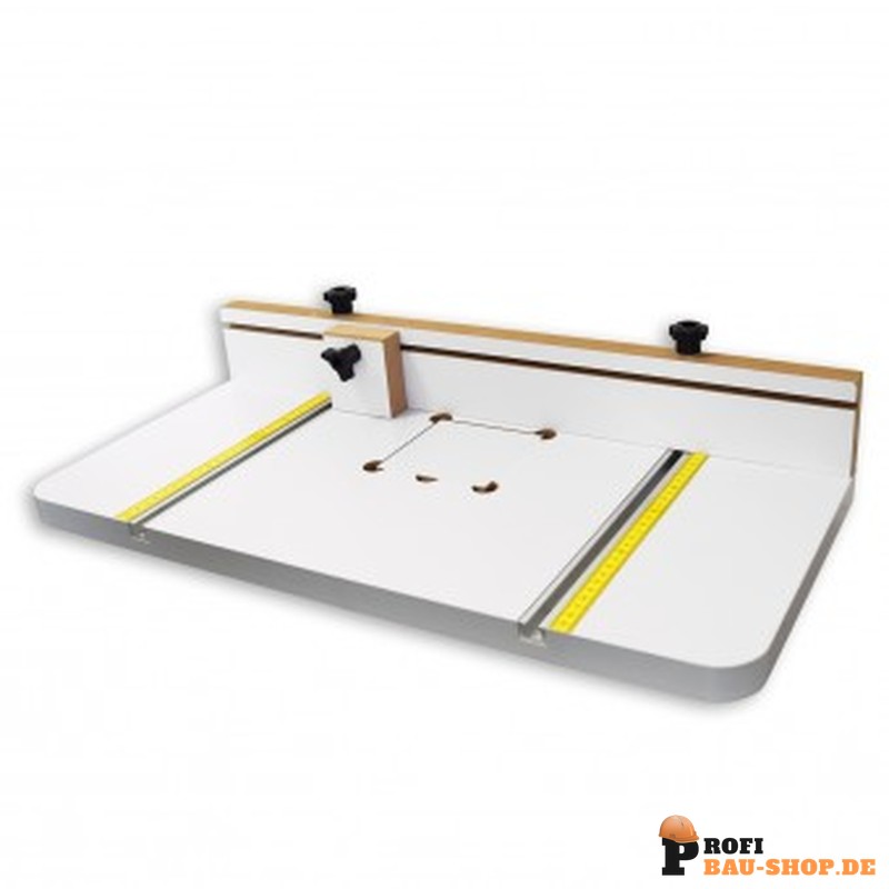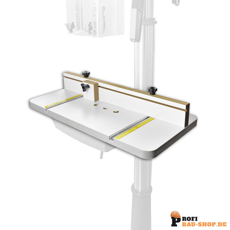 Ein besonderes Highlight ist die flexible Montage. Dank der verstellbaren Befestigungsklammern lässt sich der DPT-65 mühelos an Unterkonstruktionen mit einer Breite von 245 bis 425 mm fixieren. Eine zusätzliche, um 90 mm nach innen versetzte Fixierungsmöglichkeit erlaubt zudem die Montage an alternativen Aufnahmepunkten, was den Tisch extrem anpassungsfähig macht. Die massive Arbeitsplatte mit einer Stärke von 25,4 mm garantiert dabei eine belastbare und verwindungssteife Basis für Werkstücke bis zu einem Gewicht von 30 kg.