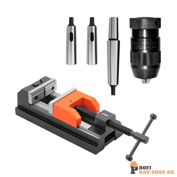 Das FLOTT Bohrpaket 4 mit Felix 2.0 120 bietet umfassende Ausstattung für präzise Bohrarbeiten. Es beinhaltet einen hochwertigen Maschinenschraubstock Felix 120, ein Schnellspannbohrfutter 3-16 mm (0,17 mm Genauigkeit), passende Kegeldorne und Reduzierhülsen für flexible Werkzeugaufnahme.