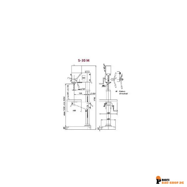 Technische Daten ELMAG Getriebe-Bohrmaschinen STRANDS Getriebe-Säulenbohrmaschine S 30 M (S 28 M)