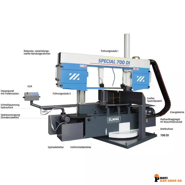 Bestellen Sie die ELMAG Metall-Bandsägemaschinen MACC Metall-Bandsägemaschine Modell SPECIAL 700 DI jetzt unkompliziert und bequem online bei Profi-Bau-Shop.de und lassen Sie sie sich direkt liefern!